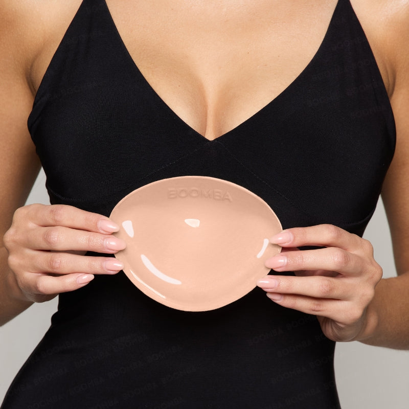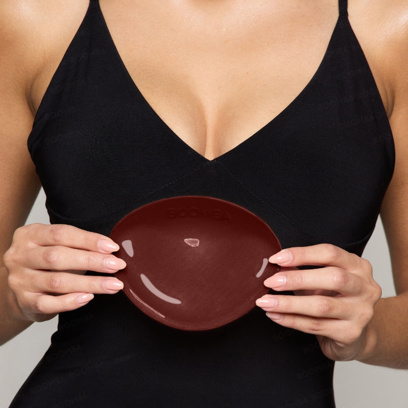 Unlike a sticky bra that is supported by adhesive, BOOMBA inserts are supported by the clothing and cannot stay up by themselves. It is crucial to wear them in tight, structured, and fitted tops.