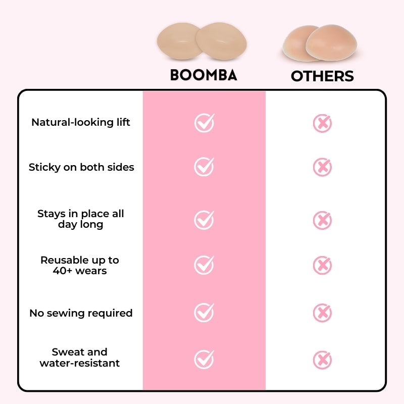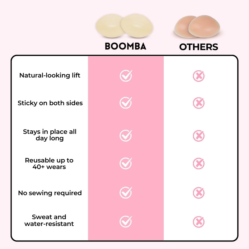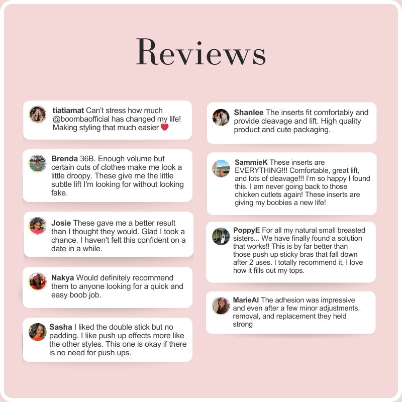 I have tried SOOOO many sticky bras and have hated all of them! I saw ads for these inserts and finally caved. I bought the Ultra Boost and Demi Boost. I wasn’t sure if they were going to work on me because I have very small boobs but these worked wonders! All of my low cut tops fit so much better now and the double sided stick is amazing. Do not walk, RUN to buy these!!!