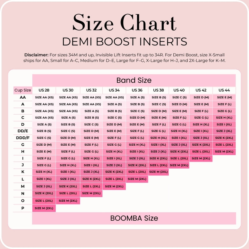 Demi Boost: The shortened version of our Ultra Boost. Lifts and adds 2 cup sizes, perfect for sweetheart necklines.