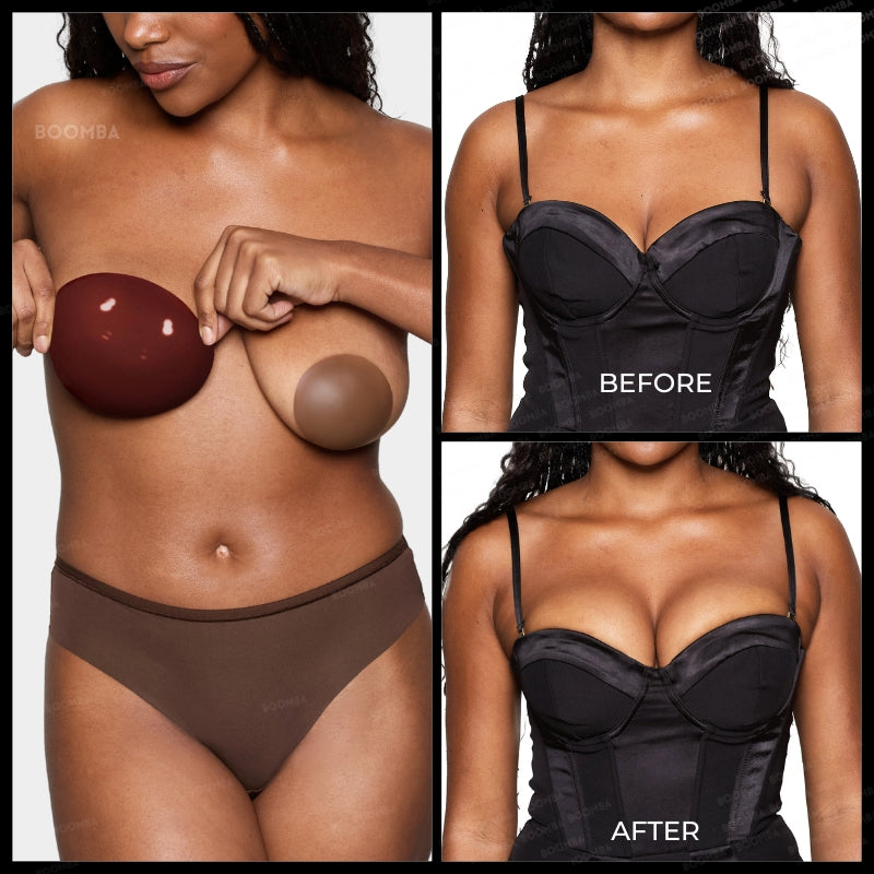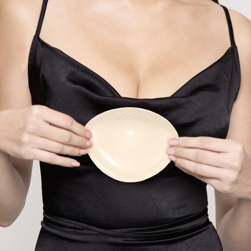 Unlike a sticky bra that is supported by adhesive, BOOMBA inserts are supported by the clothing and cannot stay up by themselves. It is crucial to wear them in tight, structured, and fitted tops.