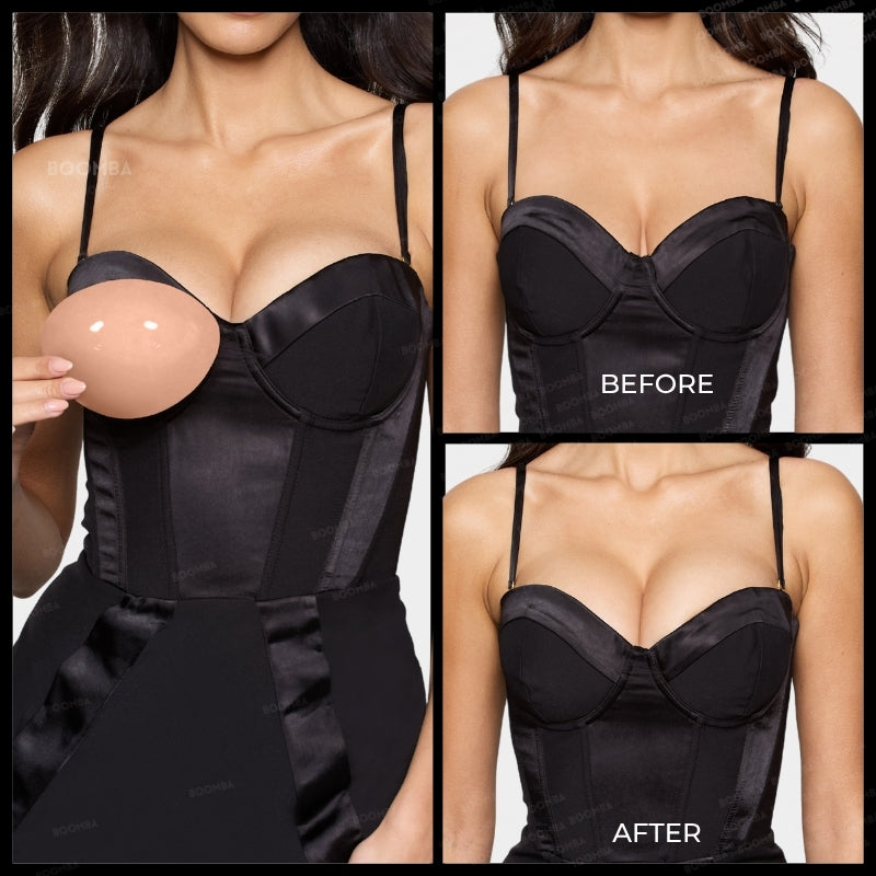 Demi Boost (Lite) Inserts are abalone-shaped inserts that increase your cup size by one cup. They give your bust a fuller look when you wear those plunging necklines and low-cut dresses.