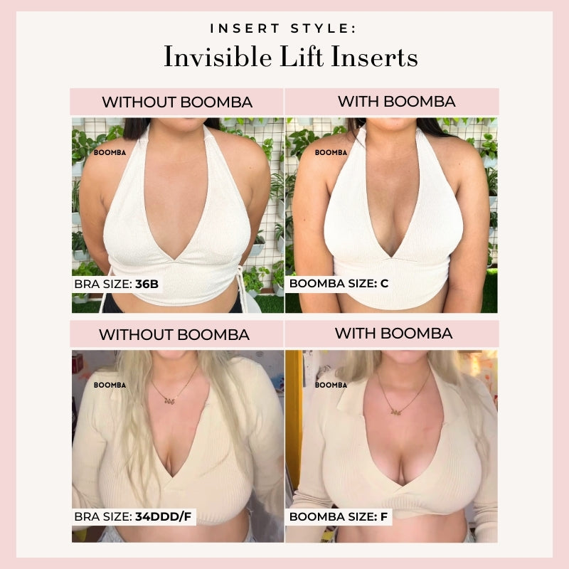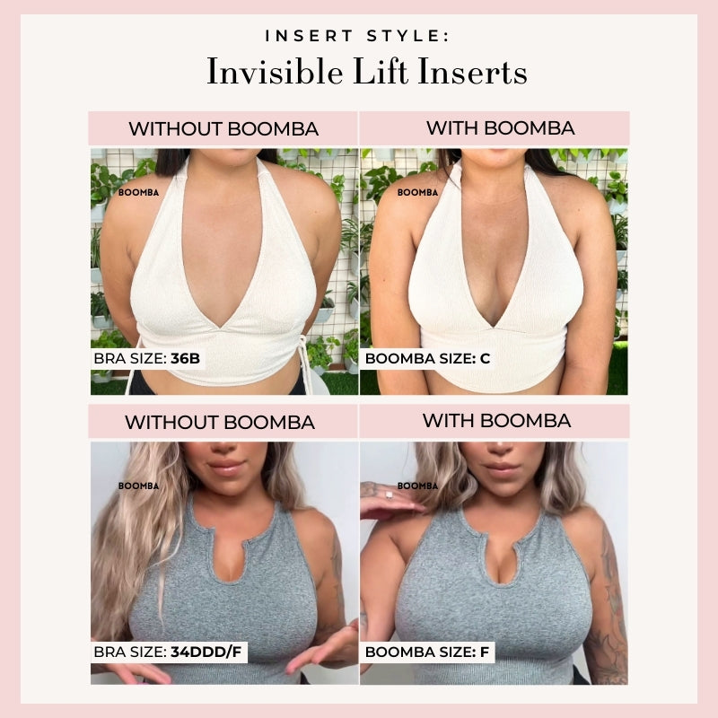 I have tried SOOOO many sticky bras and have hated all of them! I saw ads for these inserts and finally caved. I bought the Ultra Boost and Demi Boost. I wasn’t sure if they were going to work on me because I have very small boobs but these worked wonders! All of my low cut tops fit so much better now and the double sided stick is amazing. Do not walk, RUN to buy these!!!