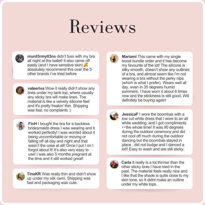 I have tried SOOOO many sticky bras and have hated all of them! I saw ads for these inserts and finally caved. I bought the Ultra Boost and Demi Boost. I wasn’t sure if they were going to work on me because I have very small boobs but these worked wonders! All of my low cut tops fit so much better now and the double sided stick is amazing. Do not walk, RUN to buy these!!!