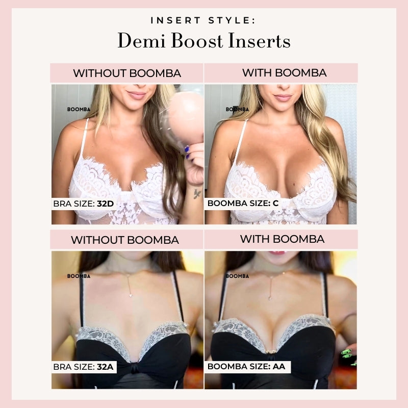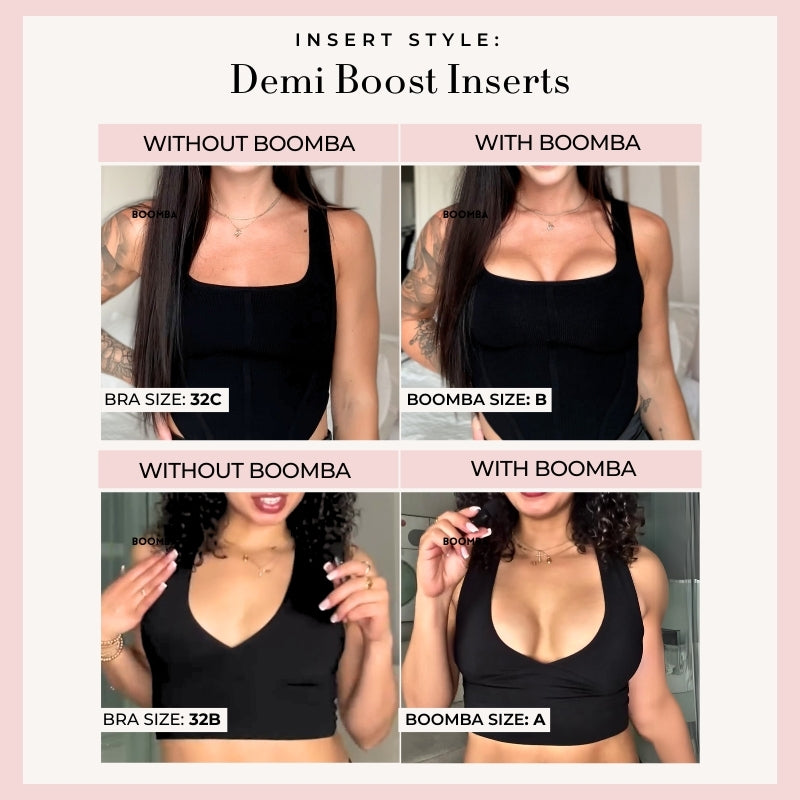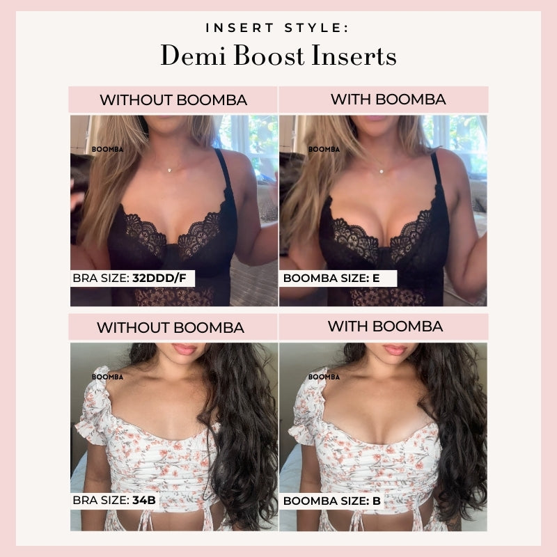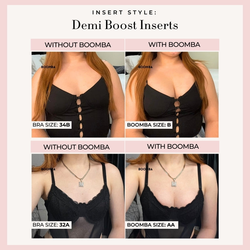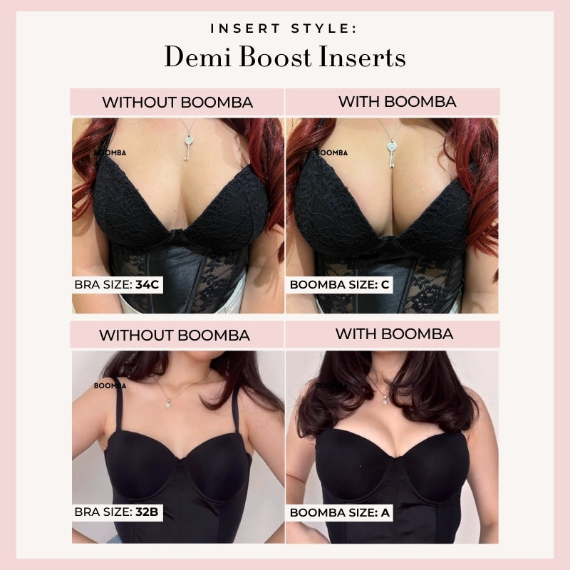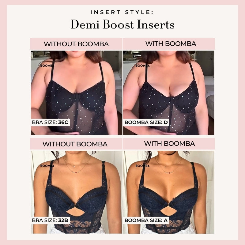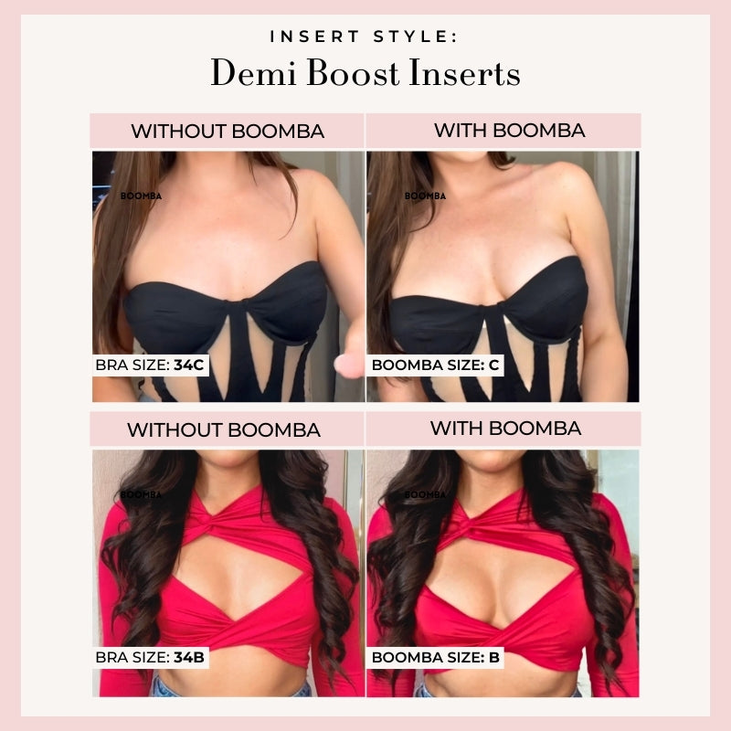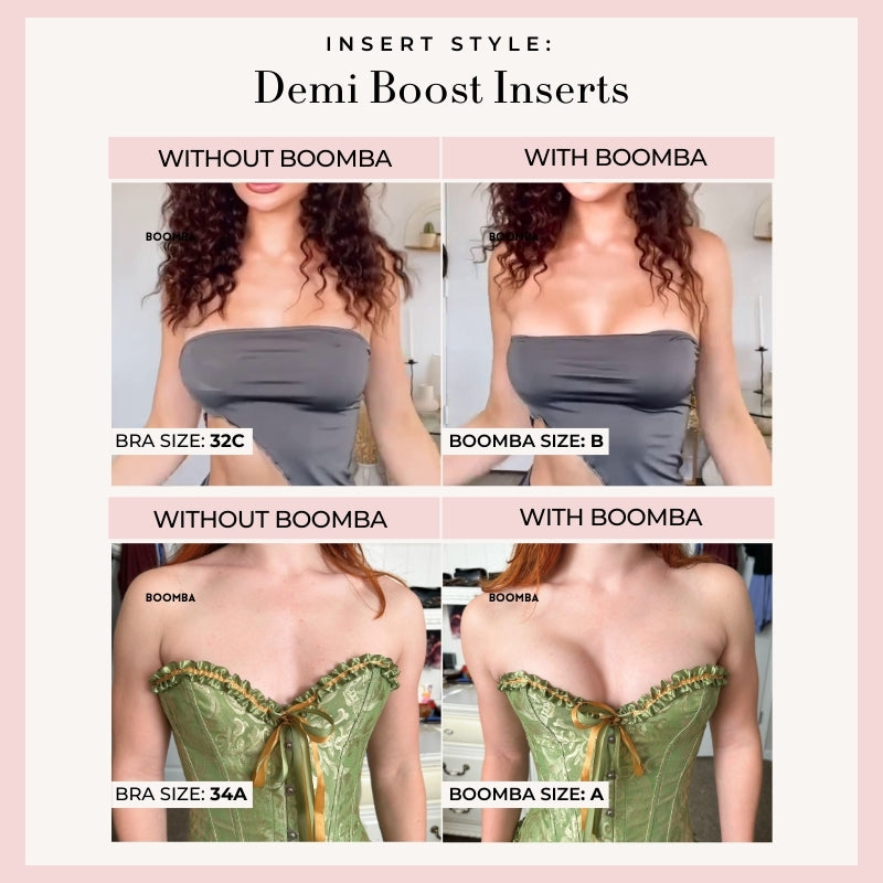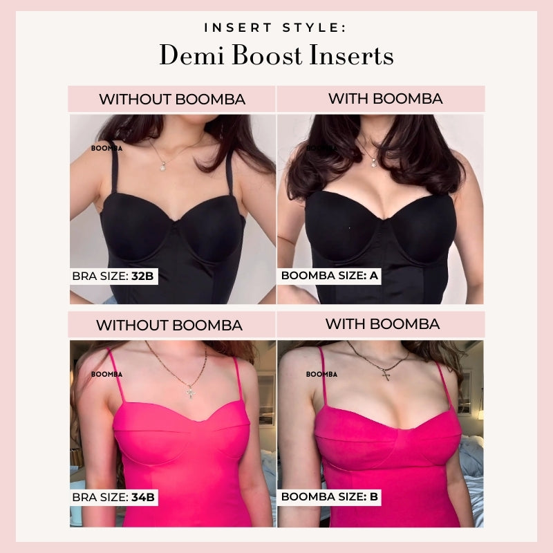 Demi Boost: The shortened version of our Ultra Boost. Lifts and adds 2 cup sizes, perfect for sweetheart necklines.