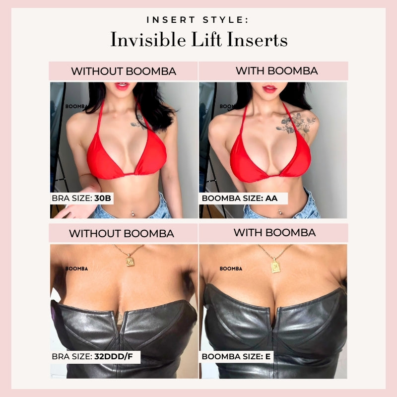 I have tried SOOOO many sticky bras and have hated all of them! I saw ads for these inserts and finally caved. I bought the Ultra Boost and Demi Boost. I wasn’t sure if they were going to work on me because I have very small boobs but these worked wonders! All of my low cut tops fit so much better now and the double sided stick is amazing. Do not walk, RUN to buy these!!!