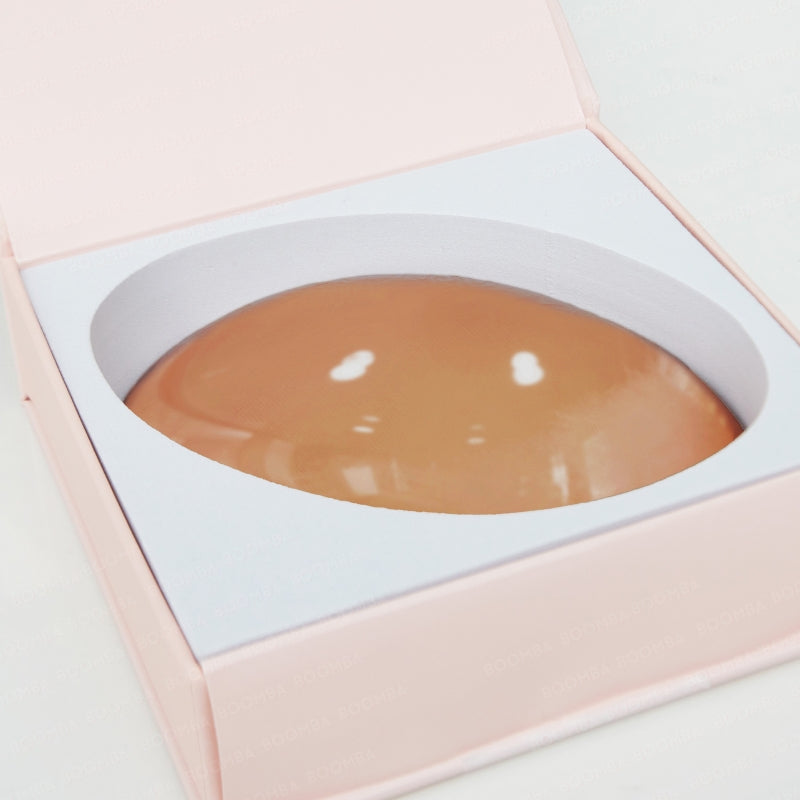 While scooping, press the insert onto the breasts and press firmly to secure.