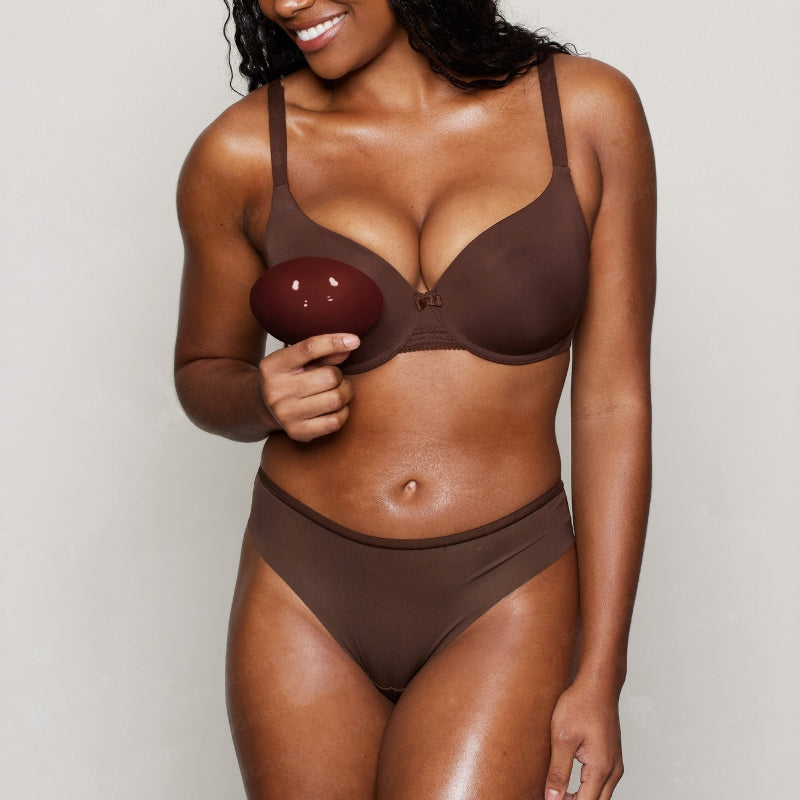 Invisible Lift: Lightly padded, designed to lift and shape without adding size in deep plunge tops and triangle bikinis.