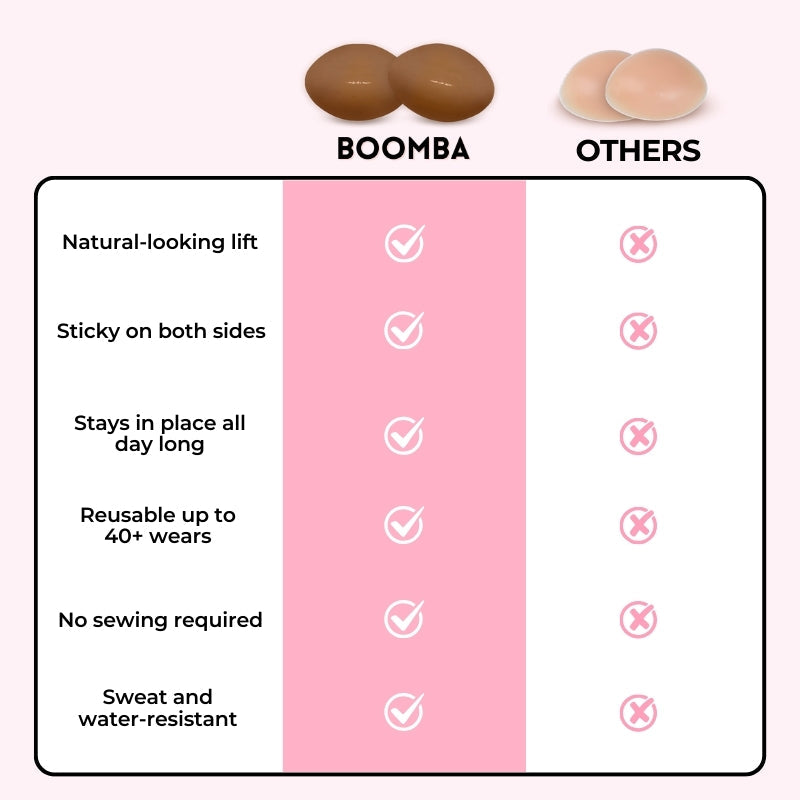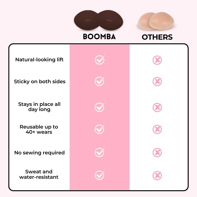 I have tried SOOOO many sticky bras and have hated all of them! I saw ads for these inserts and finally caved. I bought the Ultra Boost and Demi Boost. I wasn’t sure if they were going to work on me because I have very small boobs but these worked wonders! All of my low cut tops fit so much better now and the double sided stick is amazing. Do not walk, RUN to buy these!!!