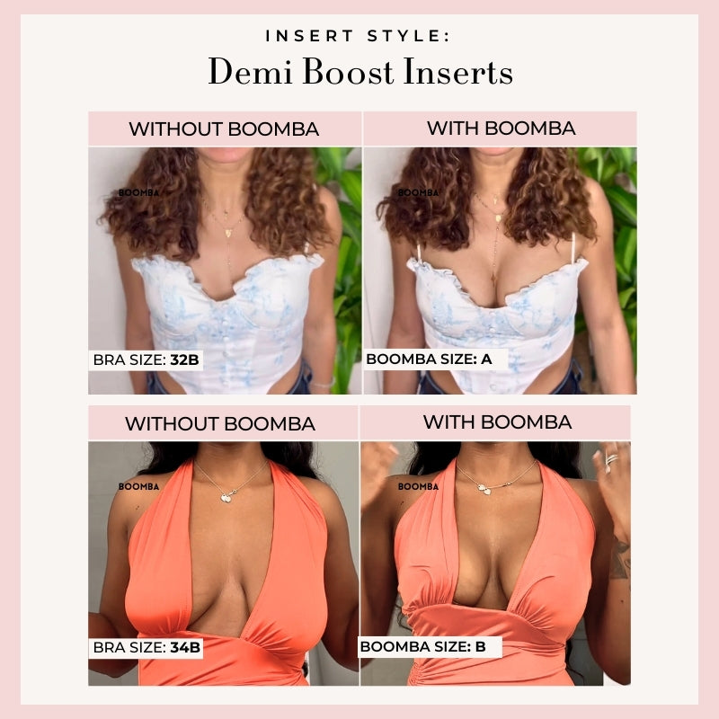 Demi Boost: The shortened version of our Ultra Boost. Lifts and adds 2 cup sizes, perfect for sweetheart necklines.