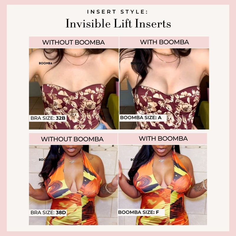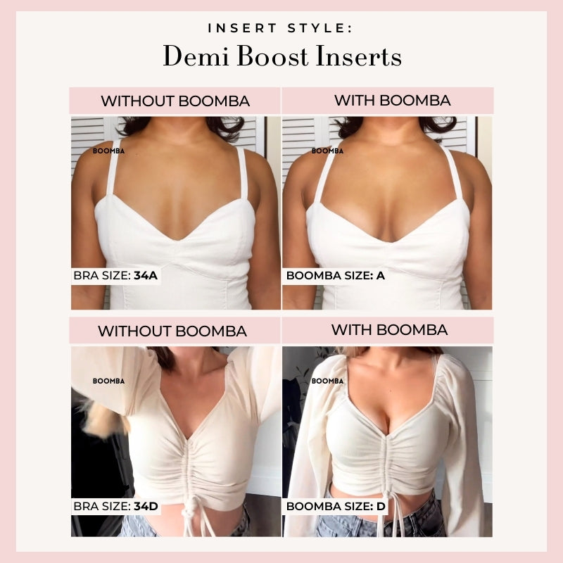 I have tried SOOOO many sticky bras and have hated all of them! I saw ads for these inserts and finally caved. I bought the Ultra Boost and Demi Boost. I wasn’t sure if they were going to work on me because I have very small boobs but these worked wonders! All of my low cut tops fit so much better now and the double sided stick is amazing. Do not walk, RUN to buy these!!!