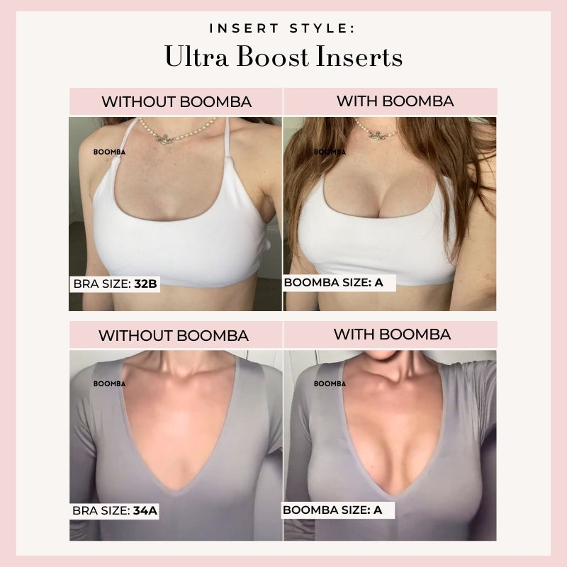 This bundle contains all three styles of our popular inserts, Ultra Boost, Demi Boost, and Invisible Lift. It also contains our best-selling Magic Nipple Covers (adhesive), Satin Nipple Covers, and BOOMBA Magic Strips.