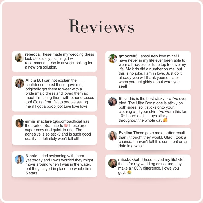 I have tried SOOOO many sticky bras and have hated all of them! I saw ads for these inserts and finally caved. I bought the Ultra Boost and Demi Boost. I wasn’t sure if they were going to work on me because I have very small boobs but these worked wonders! All of my low cut tops fit so much better now and the double sided stick is amazing. Do not walk, RUN to buy these!!!